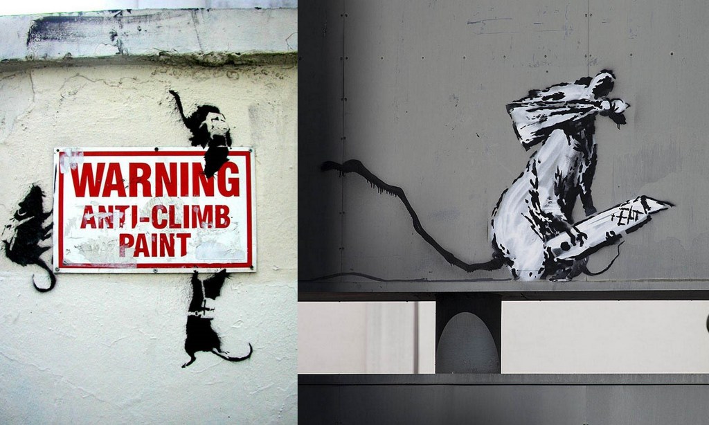 Narodził się pierwszy ważny szablon – szczur, który dla Banksy’ego jest symbolem wszystkich ludzi znajdujących się na marginesie społecznym przez postępującą globalizację. Szczur Banksy’ego wprowadzony do przestrzeni może być terrorystą, może łamać zasady, jest bezkarny. Dlaczego? Bo jest mały, nic nieznaczący i praktycznie niezauważalny dla przechodniów – stanowi swoisty symbol wykluczenia.