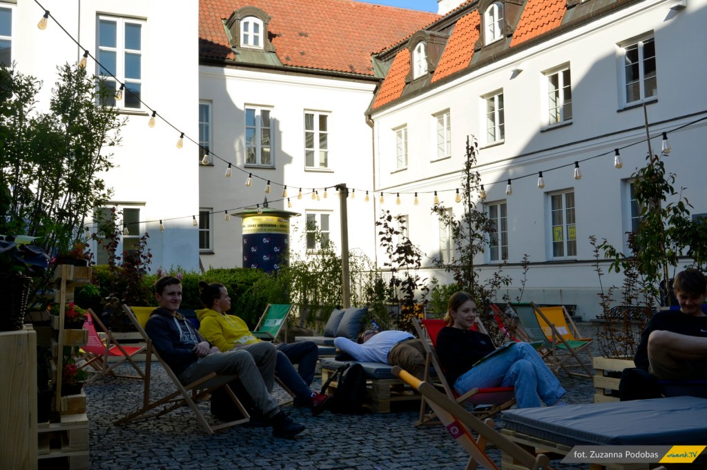 Zielona strefa, miejsce spotkań oraz mała kwietna oaza wydzielona wśród miejskich szarości, powstała z inicjatywy Samorządu Studentów Uniwersytetu Warszawskiego. Dziedziniec znajduje się tuż przy wejściu na teren uczelni. To doskonała przestrzeń do zaznania chwili spokoju, szczególnie w ostatnich dniach roku akademickiego. Zielony zakątek to nie tylko miejsce, w którym można rozwijać swoje życie towarzyskie. Można podziwiać tam także piękne kwiaty. Na dziedzińcu znajdują się również donice z różnorodnymi ziołami (na przykład z rozmarynem czy miętą), które można zrywać! Klimatyczny charakter dziedzińca podkreślają lampki okalające całą konstrukcję. Poza kolorowymi leżakami, drewnianymi balami, na których ustawione zostały kwietniki, znajdziesz tam także pojemniki recyklingowe. Zielony Dziedziniec nie tylko umożliwia odpoczynek, lecz także pogłębia naszą troskę o środowisko.