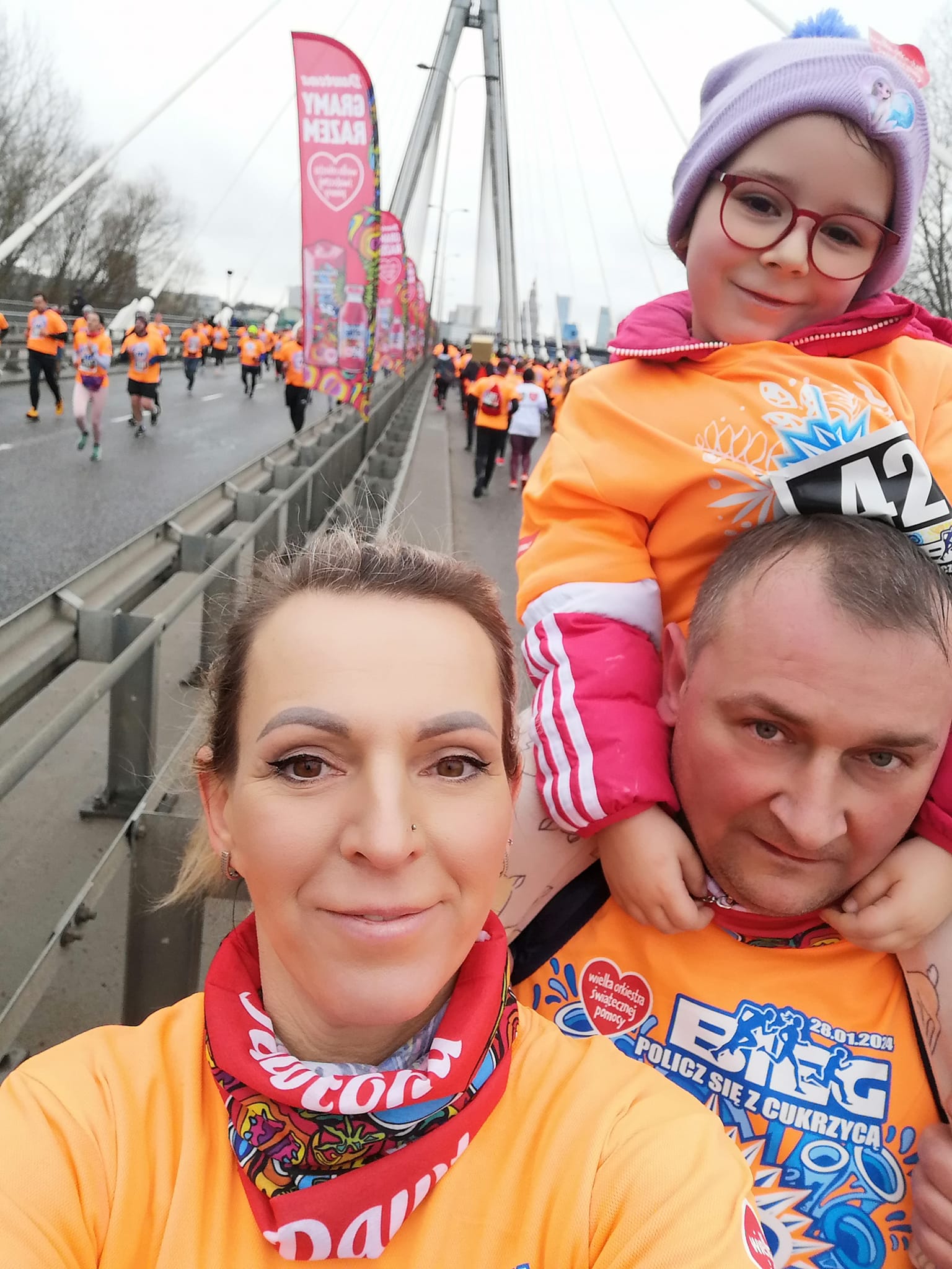 Agata z Dębek przebiegła swoje 5 kilometrów z ogromnym uśmiechem na twarzy, psim seniorkiem, córeczką w wózku i… dzidziusiem w brzuszku! Agata jest w 4 miesiącu ciąży – ogromne gratulacje. (Pamiętajcie, że każda ciąża jest indywidualna i taki wysiłek musicie ustalić z lekarzem, tak jak zrobiła to Agata) Jest to drugi jej bieg, ale na pewno nie ostatni. Wspiera tym mamę, która choruje na cukrzycę, przez co sama jest na to bardziej podatna. “Gdybym była kiedyś w sytuacji, że potrzebuję pompy insulinowej, a nie miałabym możliwości zakupu takowej – byłoby mi bardzo miło, gdyby ktoś dla mnie przebiegł, dla niektórych tylko, a dla innych aż 5 km.”