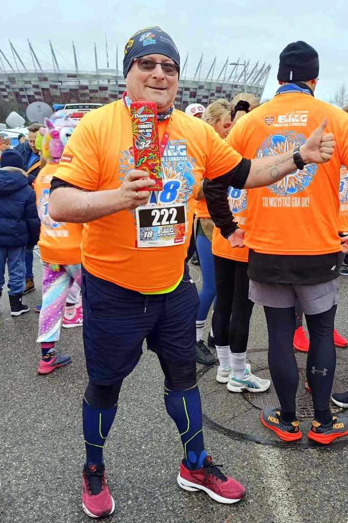 Pan Michał sam choruje na cukrzyce, nie tylko wspiera WOŚP, ale biegł z nami po raz 13.