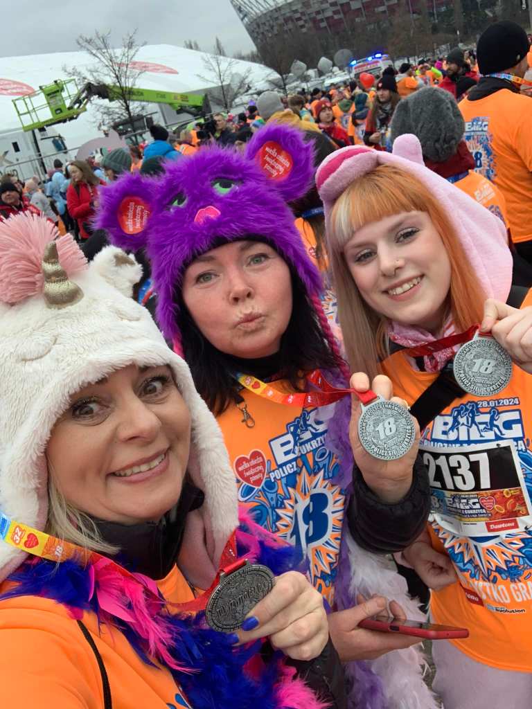 Żaneta i Lea brały kolejny już raz udział w biegu. „Nasza historia z WOŚP sięga dnia narodzin Lei, gdzie w wyniku komplikacji okołoporodowych dostała 2 udarów mózgu. Leżała na OIM Neatologicznym
