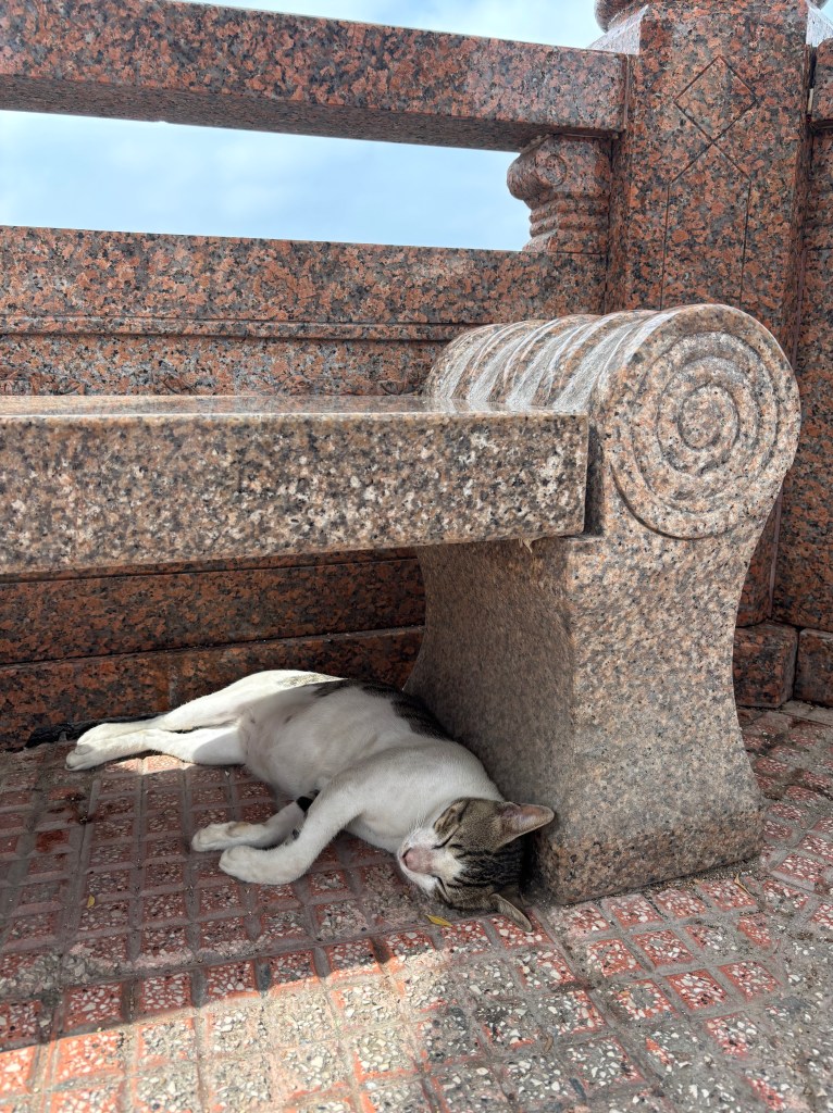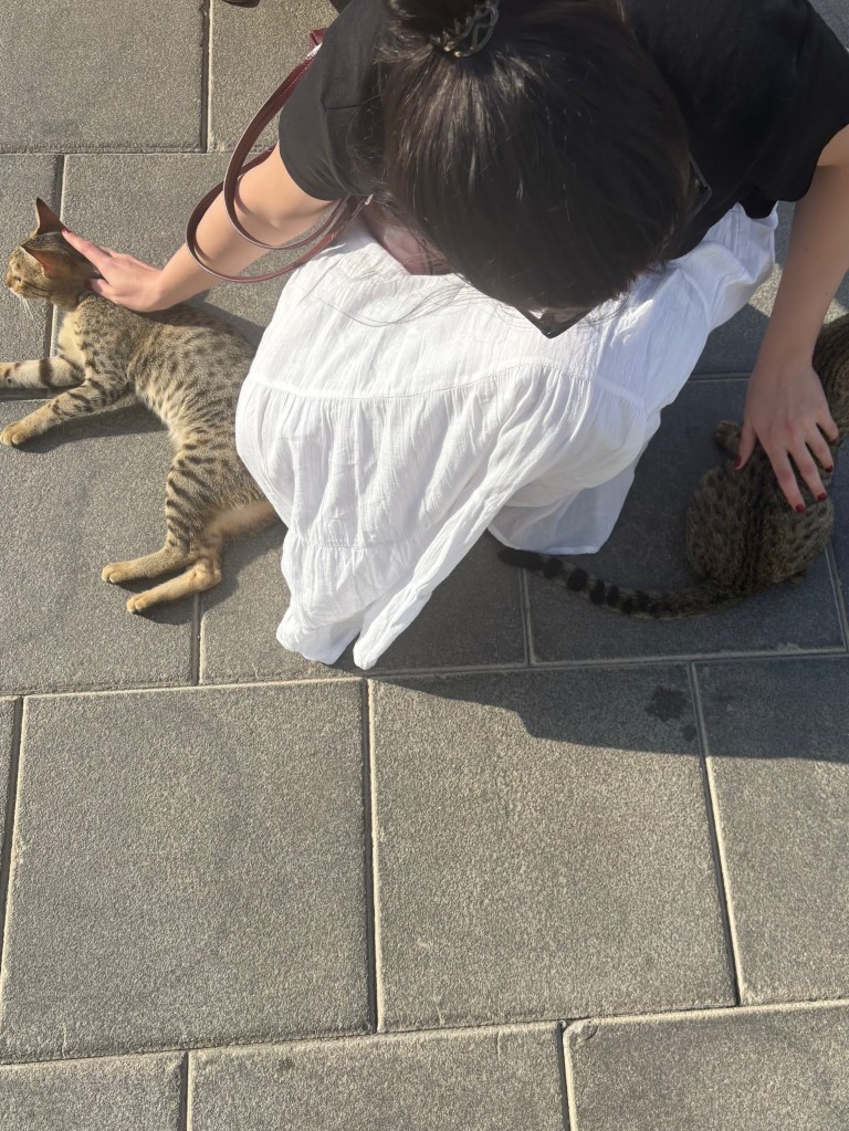 Nie jest to odosobniona opinia – problem bezdomnych kotów w Dubaju jest znany i opisywany przez organizacje zajmujące się ochroną zwierząt, które wskazują zarówno na porzucenia, jak i brak powszechnego systemu schronisk jako główne przyczyny ich dużej liczby (np. K9 Friends Dubai czy Stray Dogs Center UAQ). Ta świadomość sprawiła, że każde spotkanie z takim kotem było dla mnie bardziej poruszające – starałam się zawsze choć na chwilę okazać im trochę miłości.