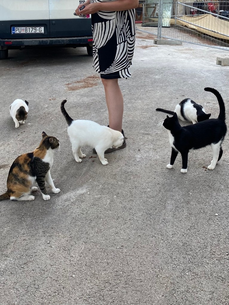 Zwierzęta są tam regularnie dokarmiane zarówno przez mieszkańców, jak i turystów, a przy tym niezwykle spragnione kontaktu z człowiekiem. Same podchodzą, ocierają się i chętnie dają się głaskać. Oczywiście nie mogłam się oprzeć i odwiedzałam to miejsce niemal codziennie – karmienie i spędzanie czasu z kotami stało się jednym z najważniejszych punktów mojego pobytu. Nie ukrywam, że była to także jedna z głównych motywacji, które skłoniły mnie do odwiedzenia Puli.