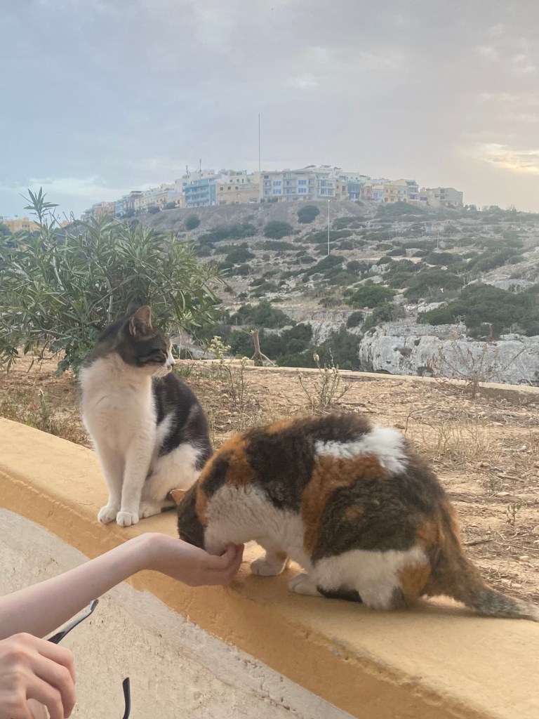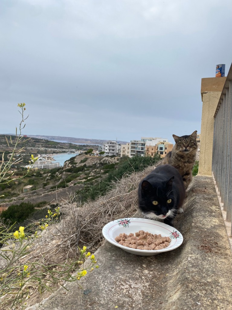Na Malcie, a konkretniej w miejscowości Mellieha, koty są dosłownie wszędzie – przechadzają się ulicami, odpoczywają w cieniu murów i towarzyszą mieszkańcom w codziennym życiu. Mają nawet swoje specjalne miejsca, takie jak tzw. „Cat Village”, stworzone oddolnie przez lokalną społeczność, a także liczne punkty dokarmiania. Podczas pobytu udało nam się porozmawiać z jedną z kobiet opiekujących się kotami, która z ogromnym zaangażowaniem opowiadała o ich historii i swojej miłości do tych zwierząt.